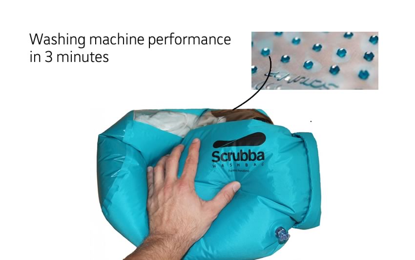 Whether you are on vacation, trekking, camping, backpacking, on a cruise or on a business trip, the Scrubba™ wash bag is the best way to wash clothes while traveling. Lightweight and compact, the Scrubba™ wash bag requires no power or electricity and allows you to wash clothes for free.